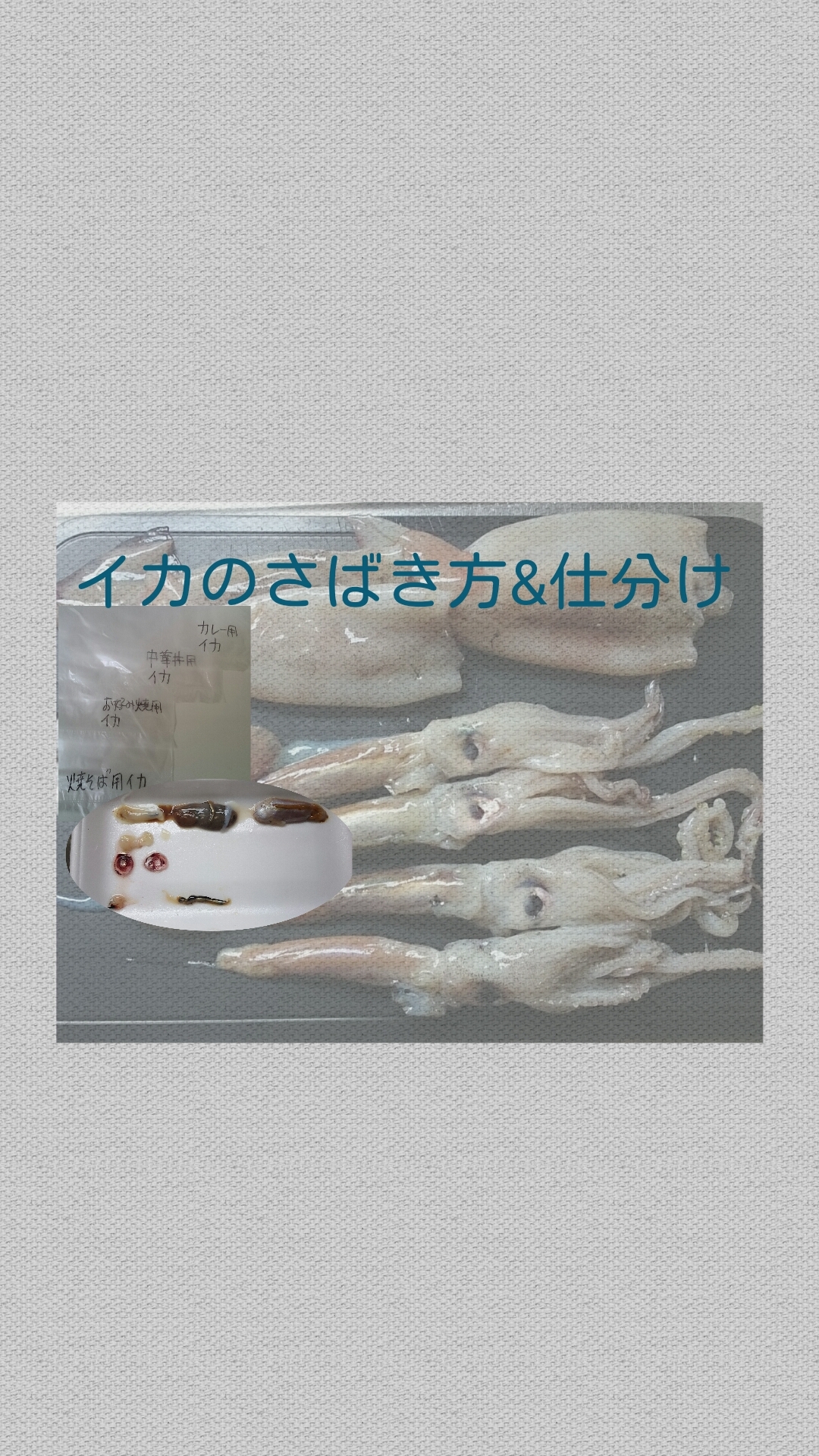 さばきたてをお客様のもとにお届けしますので 透明感があり透き通っていて新鮮そのものです!!! また、天ぷらや浜焼きにすることもでき 3種類の楽しみ方があります。 その中でも今回はお刺身のままの活イカに ついてご紹介します! みなさんに質問 コウイカの捌き方 4つのステップ ステップ1 コウイカの甲羅を取り出す まずはコウイカの捌き方で最初に行うのが、コウイカの傘の中心部分に切れ目を入れます。 この際、強く張り付いている部分はそぎ落とすように包丁を使い、それが出来たら、頭側に押し出すようにして取り出します。 ステップ2 コウイカのワタを抜く 次にコウイカの内臓部分の処理の方法ですが、コウイカの目作り方 1 イカの身の片面に包丁を入れて開く(中の袋を破らないように) 2 中のワタを取る。 3 耳を剝して耳と身の皮を剥く。 4 イカを洗う。 5 足を切る。 身を調理しやすいサイズに切る。 6 フリーザーバッグに入れて空気を抜きしっかりと封をして冷凍庫に入れて冷凍する。 7 イカの冷凍保存は早めに食べた方が美味しく食べられますが1ヵ月くらい大丈夫です。 おすすめレシピ大根とイカの